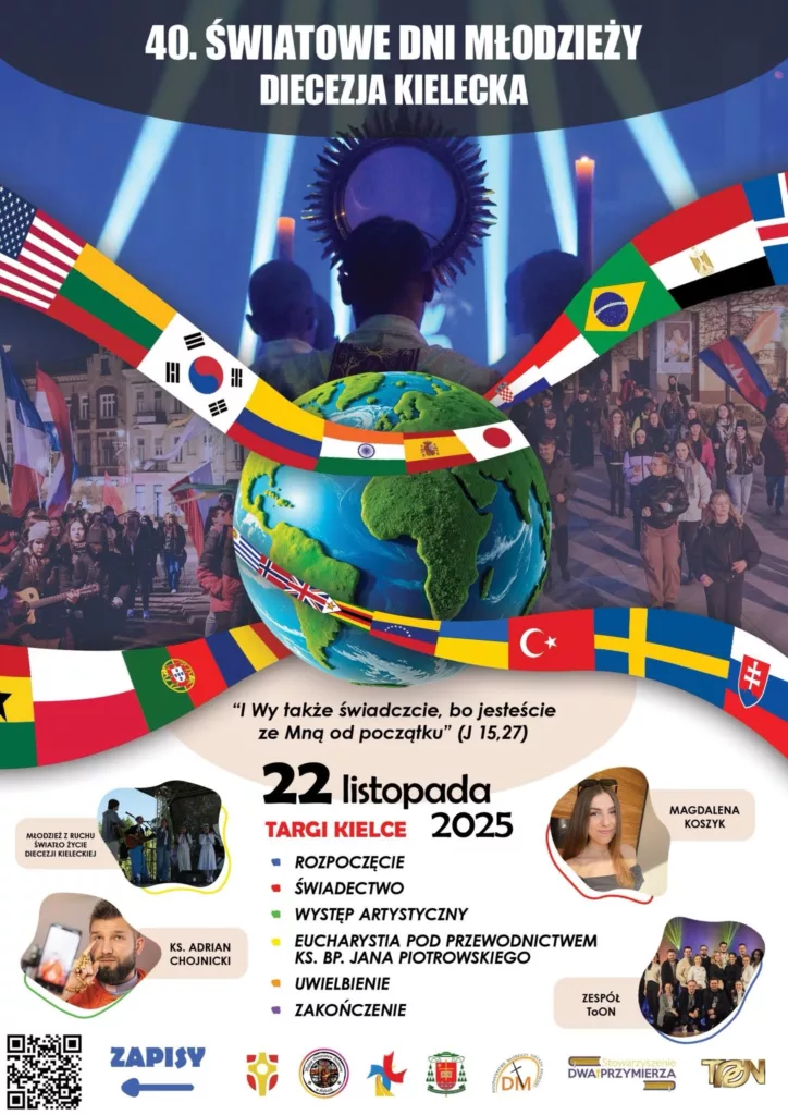 Kielce, dnia 13 listopada 2025 r. KOMUNIKAT Ojciec Święty Leon XIV w Orędziu na 40. Światowy Dzień Młodzieży zaprasza młodych do odkrywania na nowo swojej misji uczniów i świadków Jezusa oraz zachęca do odwagi w wierze i budowania przyjaźni z Chrystusem na co dzień. Ten wyjątkowy czas umacniania tej przyjaźni w duchu słów: „Wy też świadczycie, bo jesteście ze Mną” (J 15, 27), będziemy przeżywać w sobotę, 22 listopada, od godz. 14.30 w Targach Kielce. Zapraszam […]
