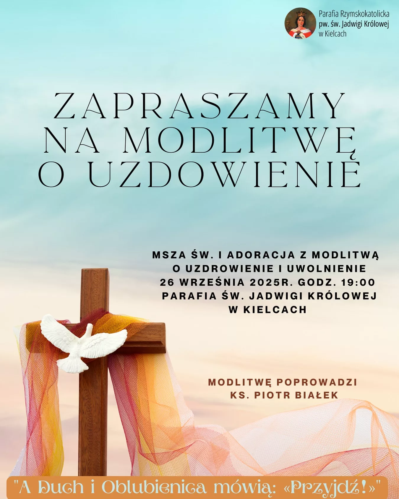 W najbliższy piątek, 26 września o godz. 19:00 zapraszamy do udziału we Mszy Świętej i adoracji z modlitwą o uzdrowienie i uwolnienie.