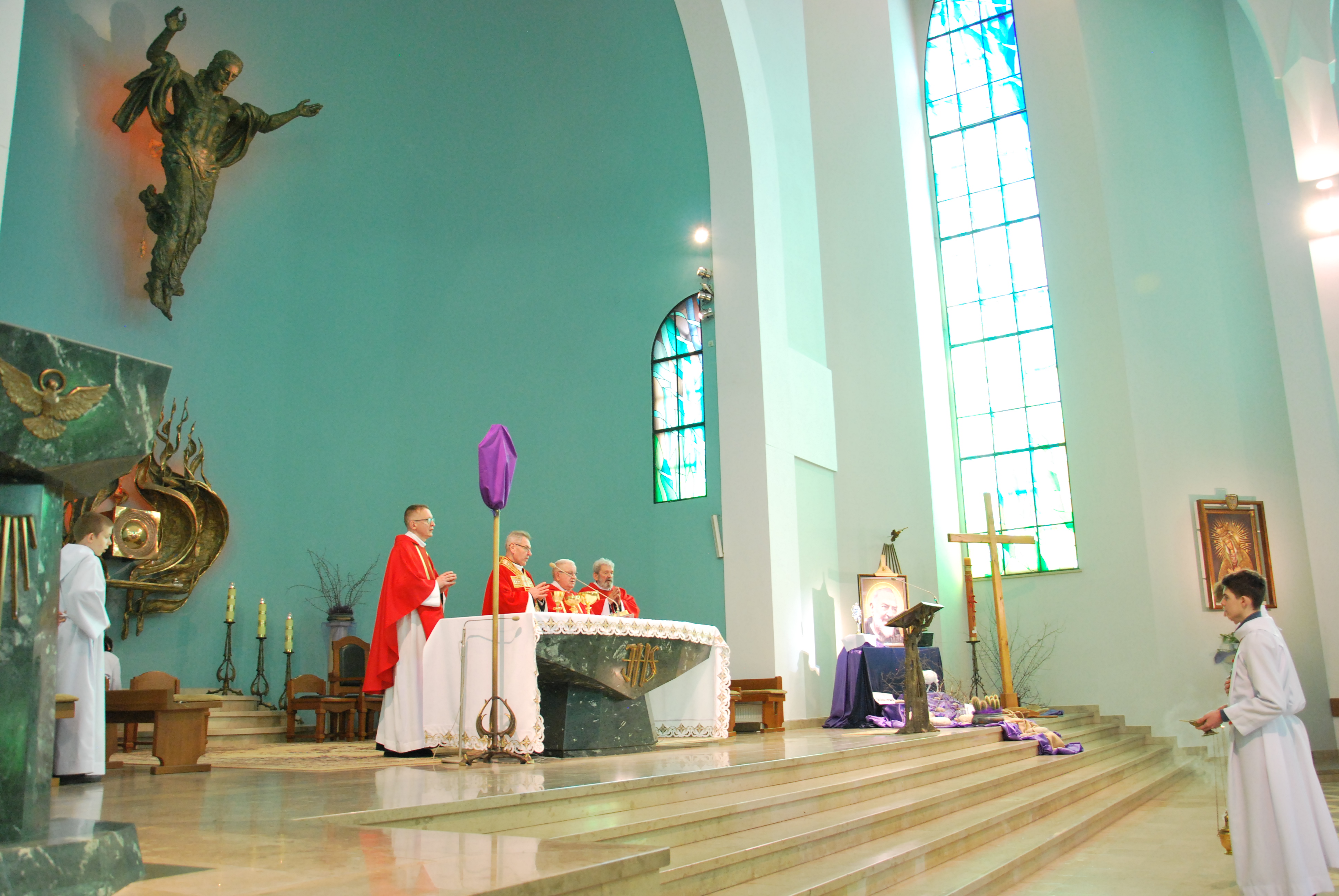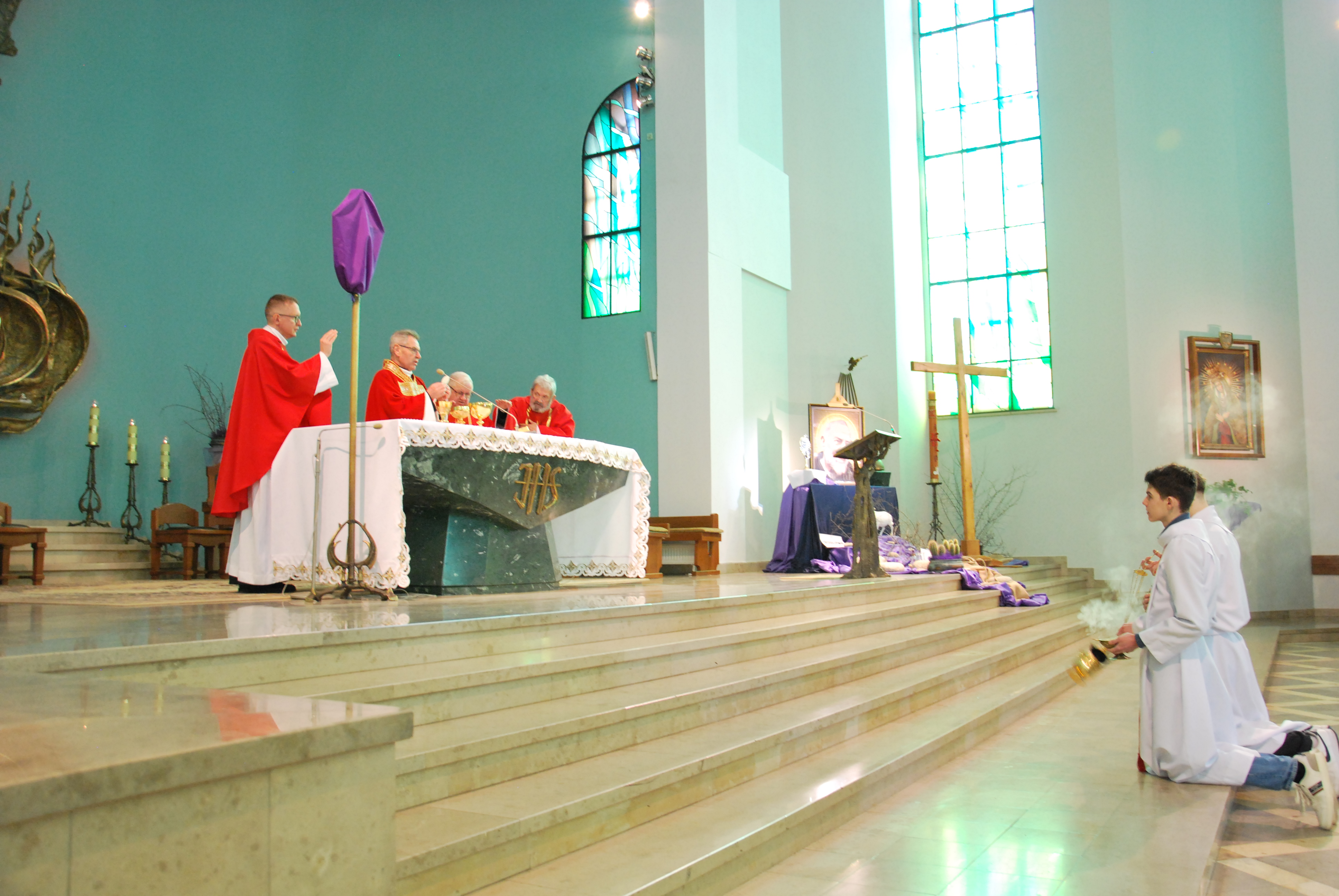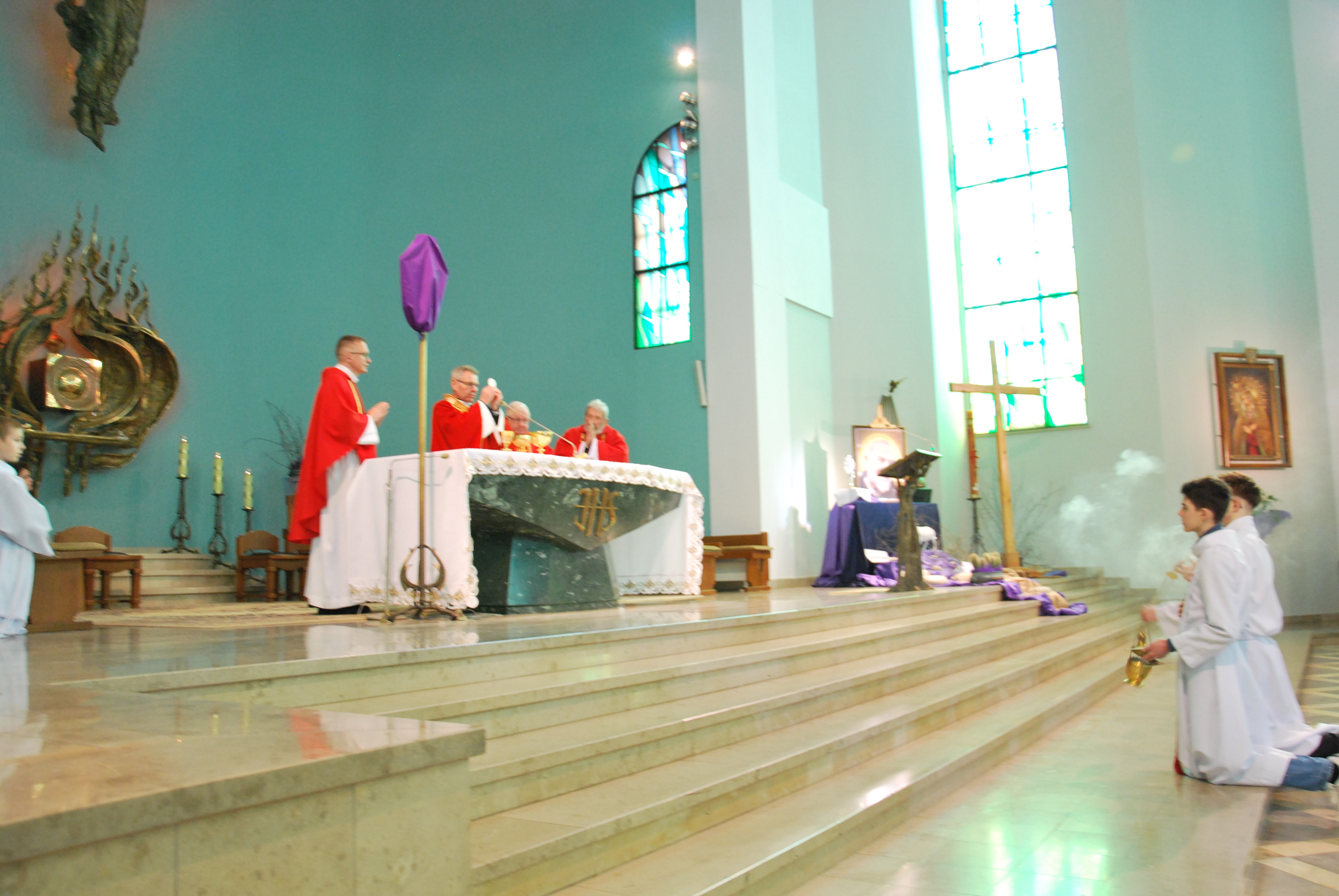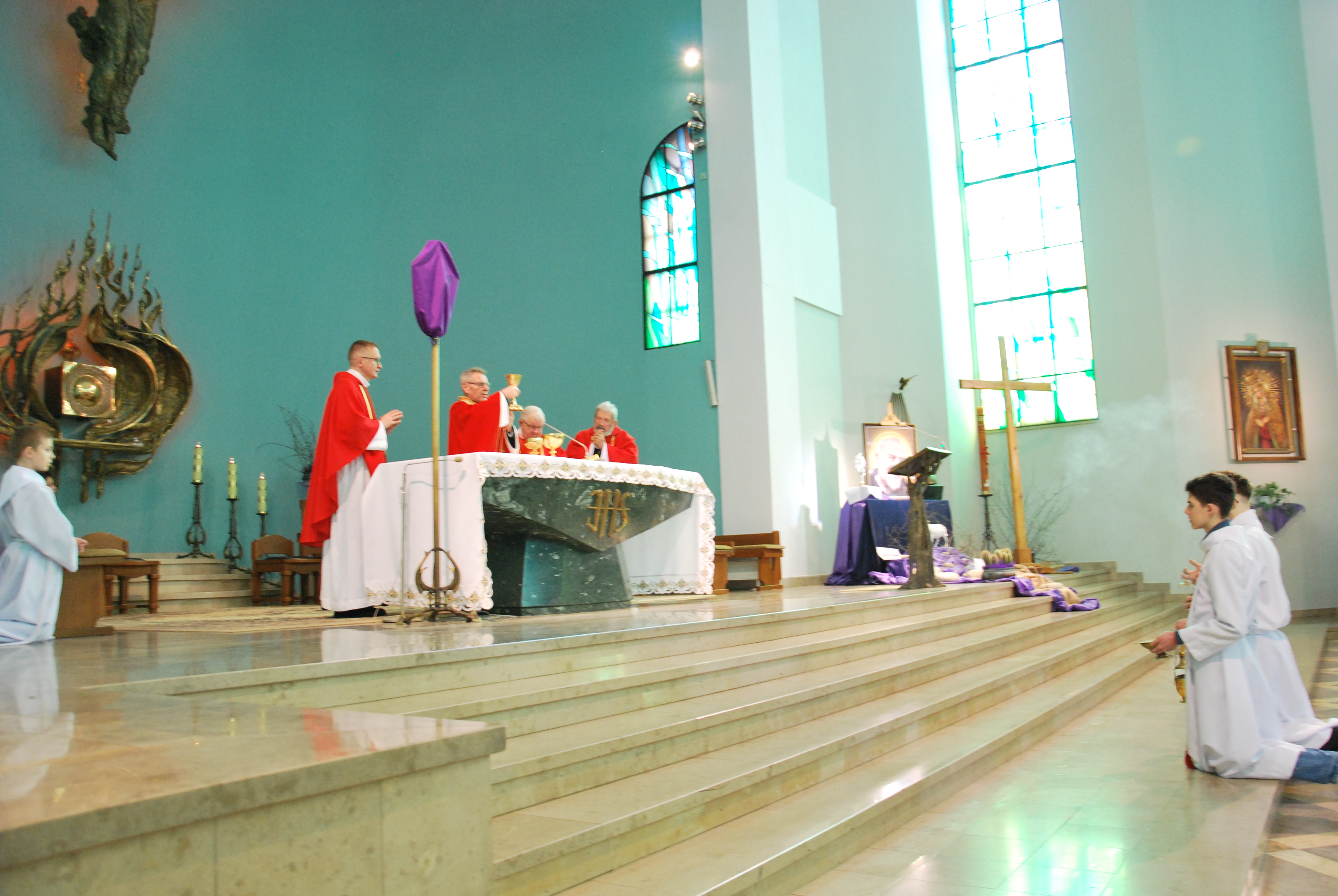 W naszym kościele parafialnym dzisiejsza liturgia miała szczególnie uroczysty charakter. O godzinie 11:00 została uroczyście wykonana śpiewana Męka Pańska według św. Jana do melodii księdza Tadeusza Miazgi. W jej wykonaniu wzięli udział chór parafialny, ksiądz Rafał oraz ksiądz Proboszcz, co pozwoliło wiernym jeszcze głębiej przeżyć tę niezwykłą opowieść o miłości Boga do człowieka.