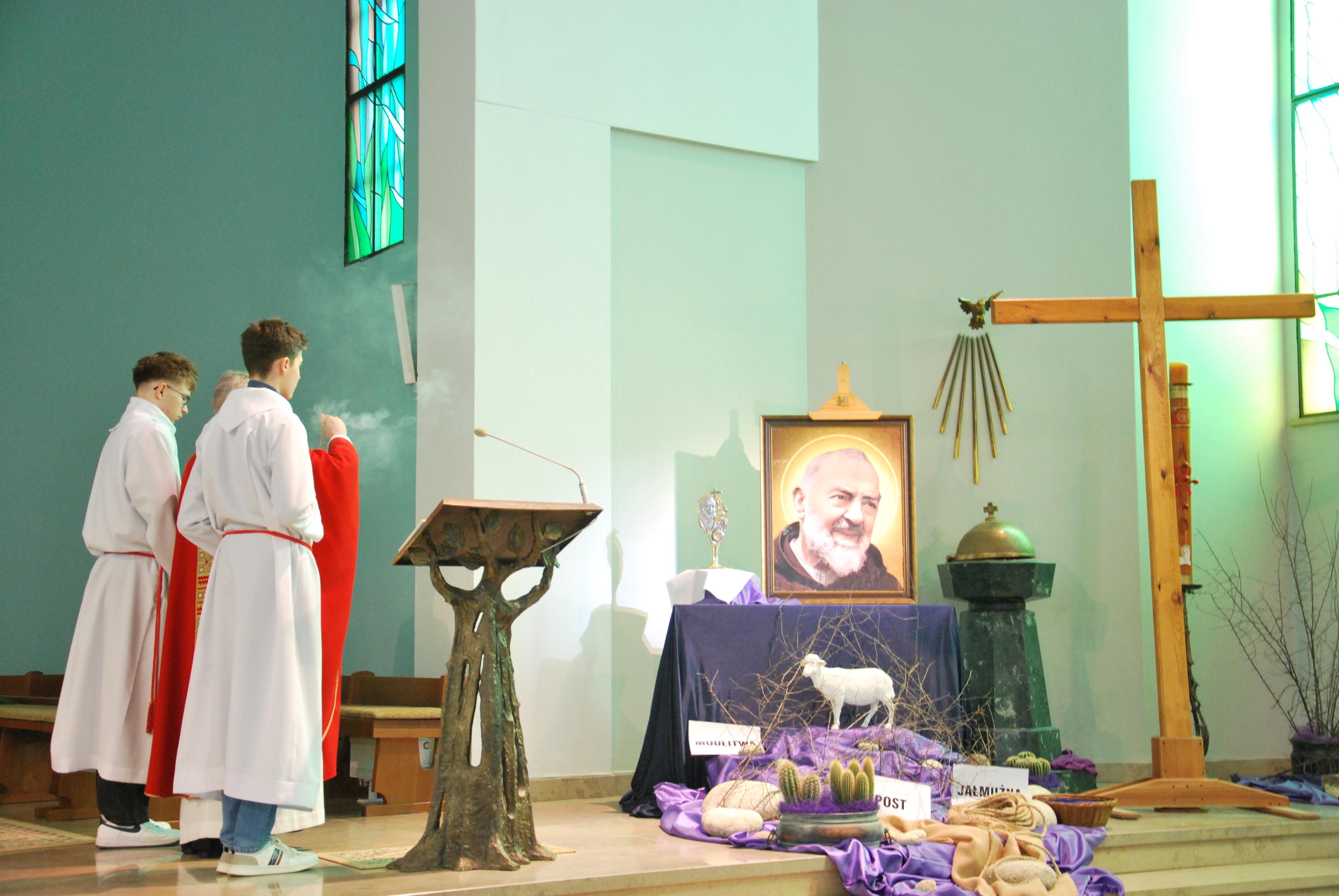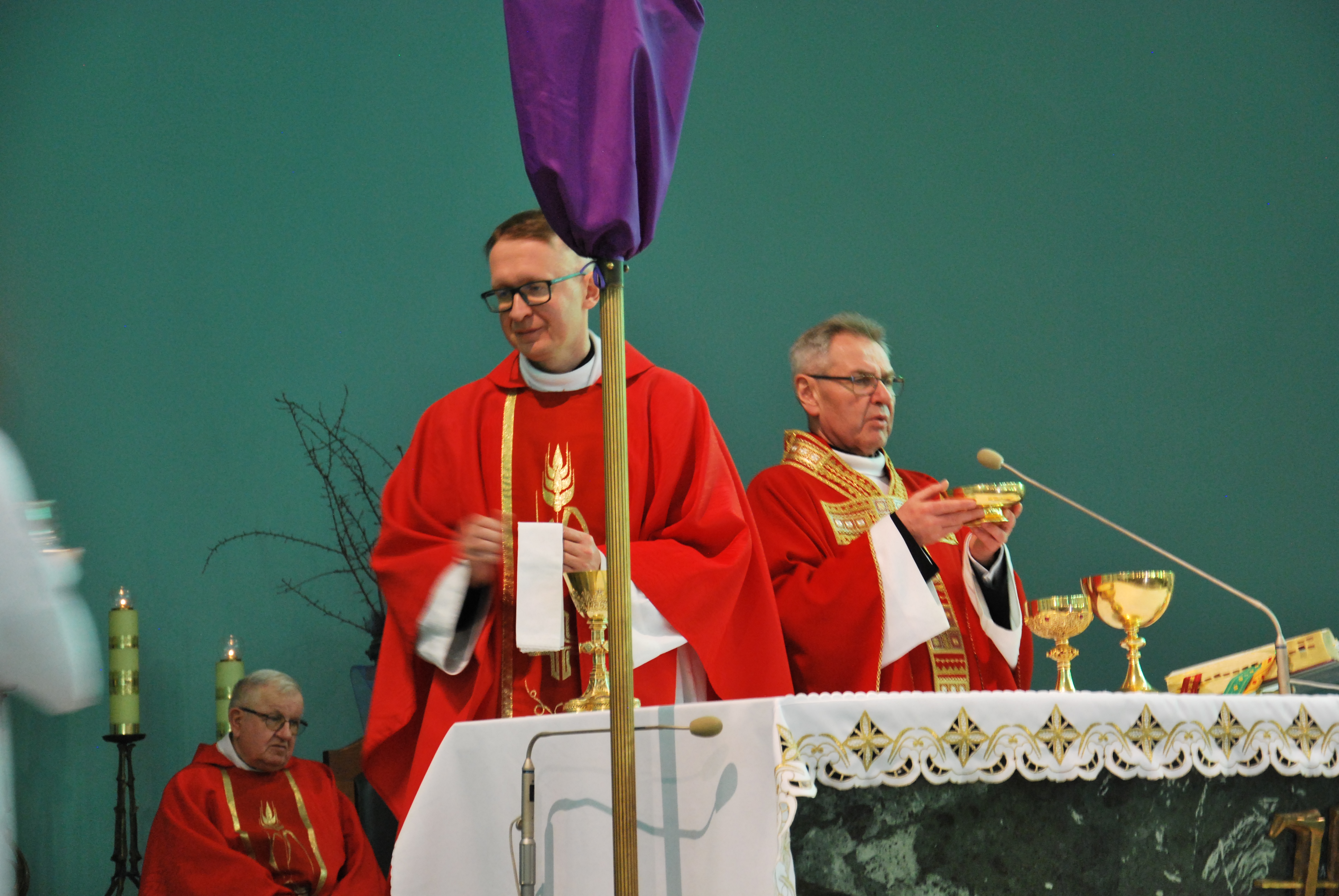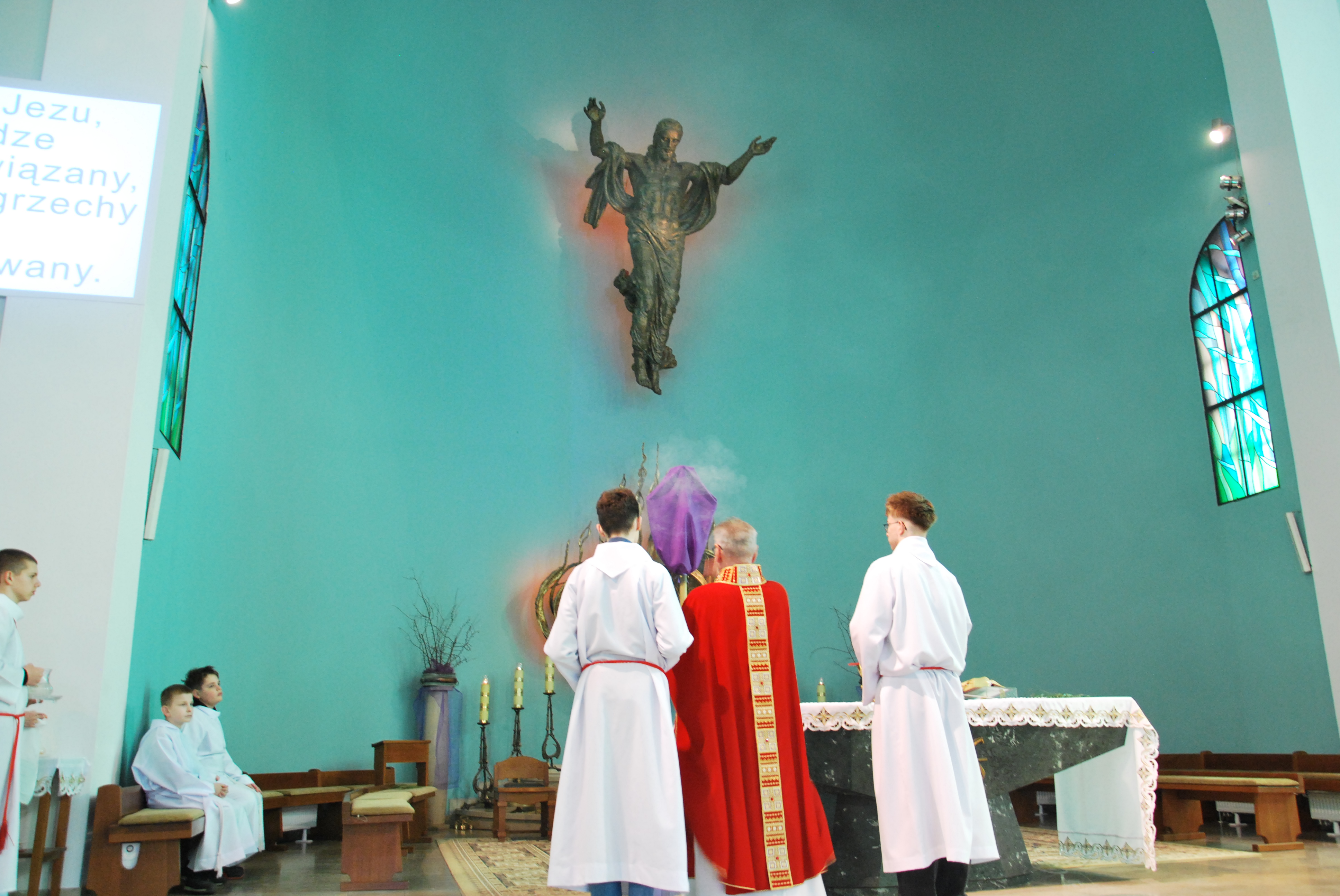 W naszym kościele parafialnym dzisiejsza liturgia miała szczególnie uroczysty charakter. O godzinie 11:00 została uroczyście wykonana śpiewana Męka Pańska według św. Jana do melodii księdza Tadeusza Miazgi. W jej wykonaniu wzięli udział chór parafialny, ksiądz Rafał oraz ksiądz Proboszcz, co pozwoliło wiernym jeszcze głębiej przeżyć tę niezwykłą opowieść o miłości Boga do człowieka.