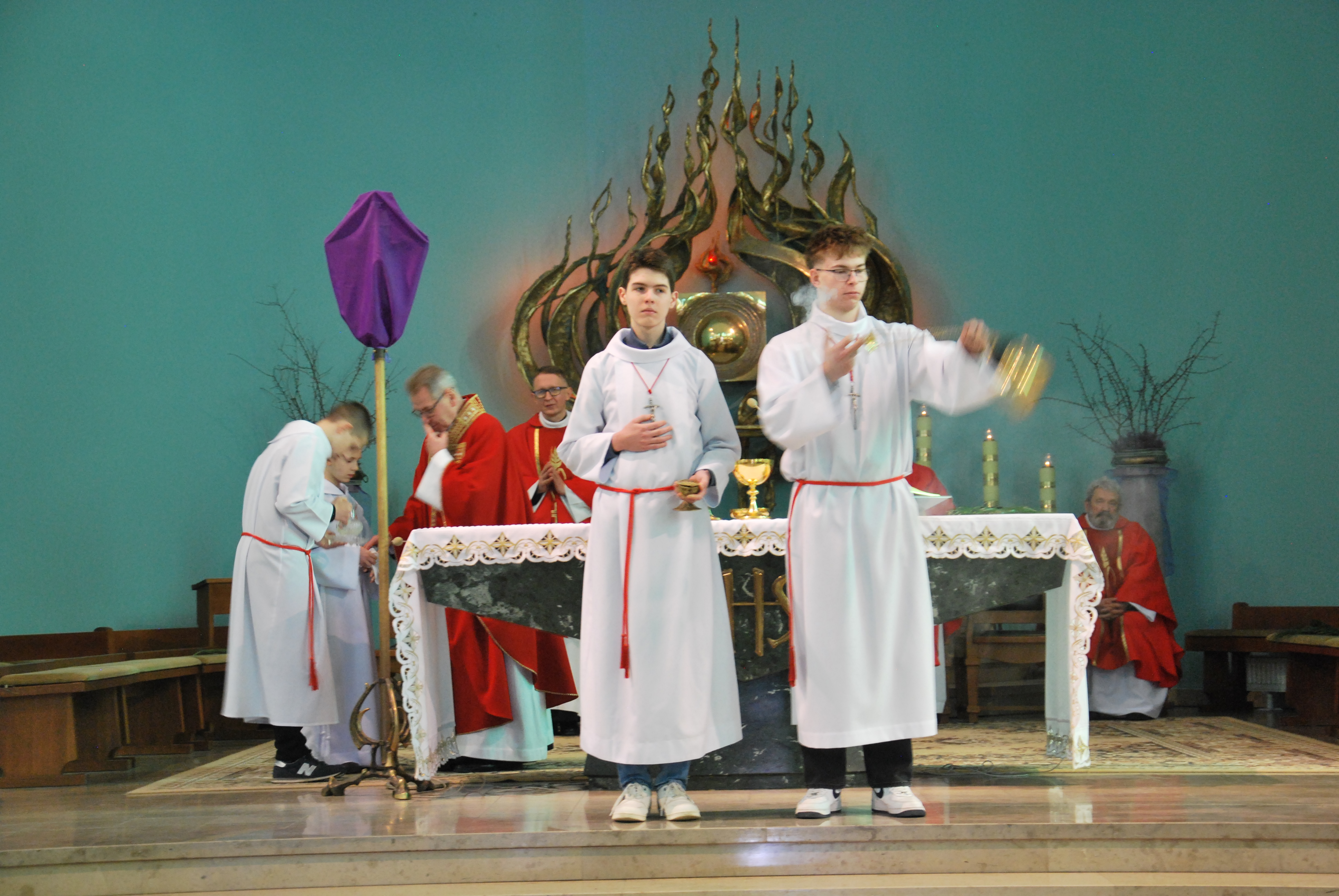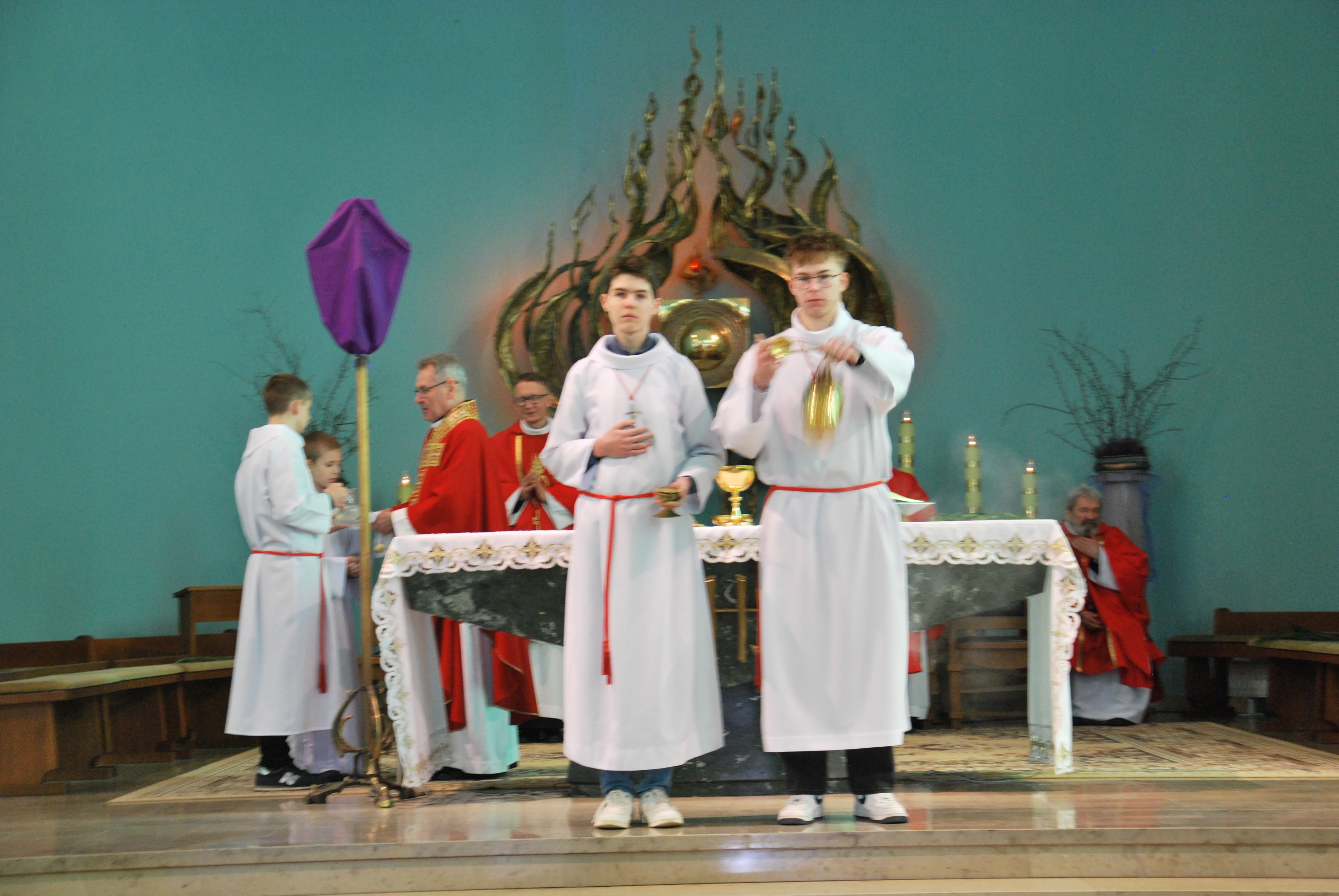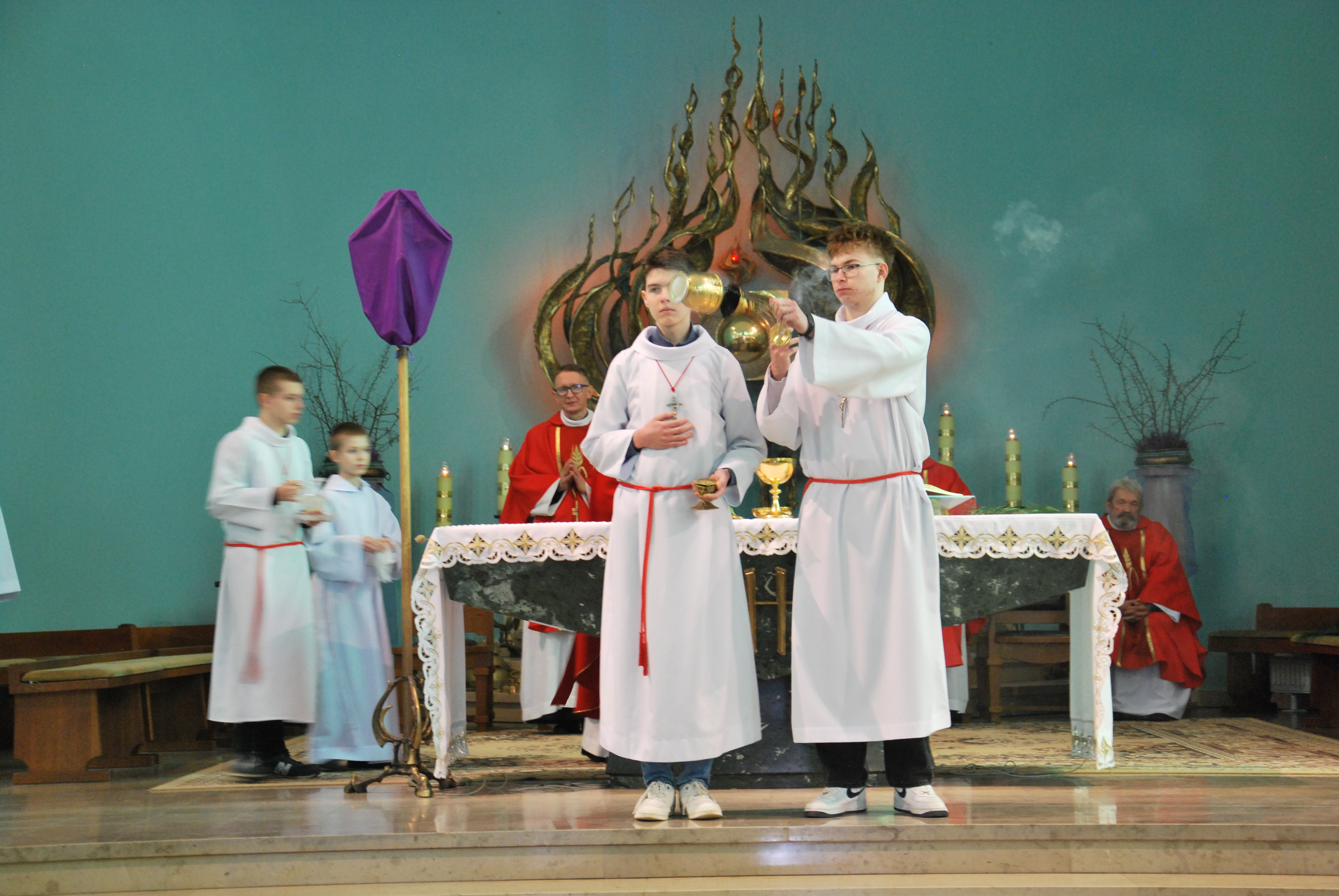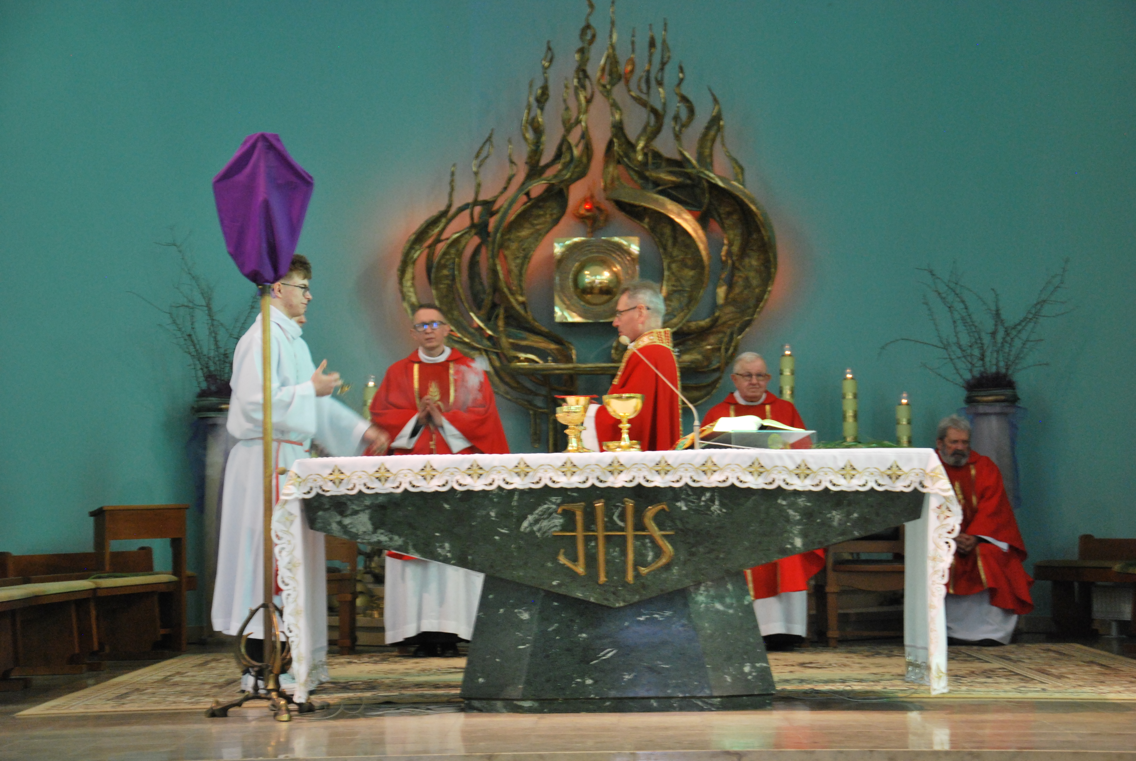W naszym kościele parafialnym dzisiejsza liturgia miała szczególnie uroczysty charakter. O godzinie 11:00 została uroczyście wykonana śpiewana Męka Pańska według św. Jana do melodii księdza Tadeusza Miazgi. W jej wykonaniu wzięli udział chór parafialny, ksiądz Rafał oraz ksiądz Proboszcz, co pozwoliło wiernym jeszcze głębiej przeżyć tę niezwykłą opowieść o miłości Boga do człowieka.