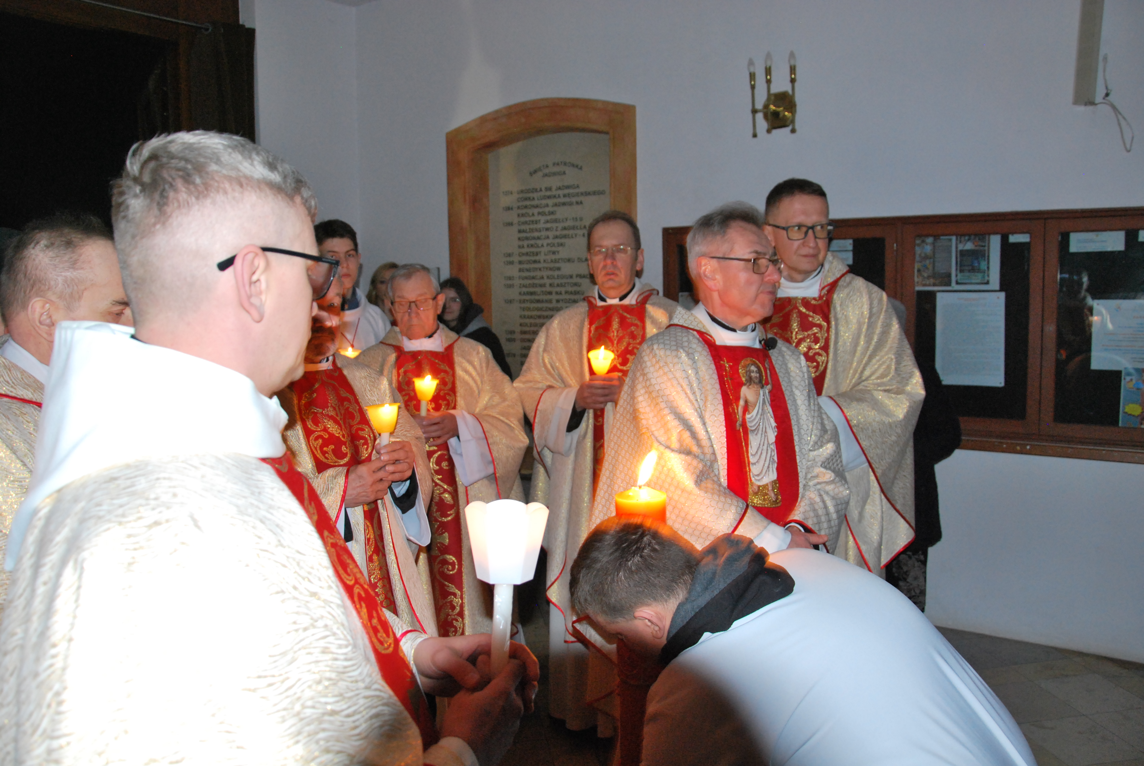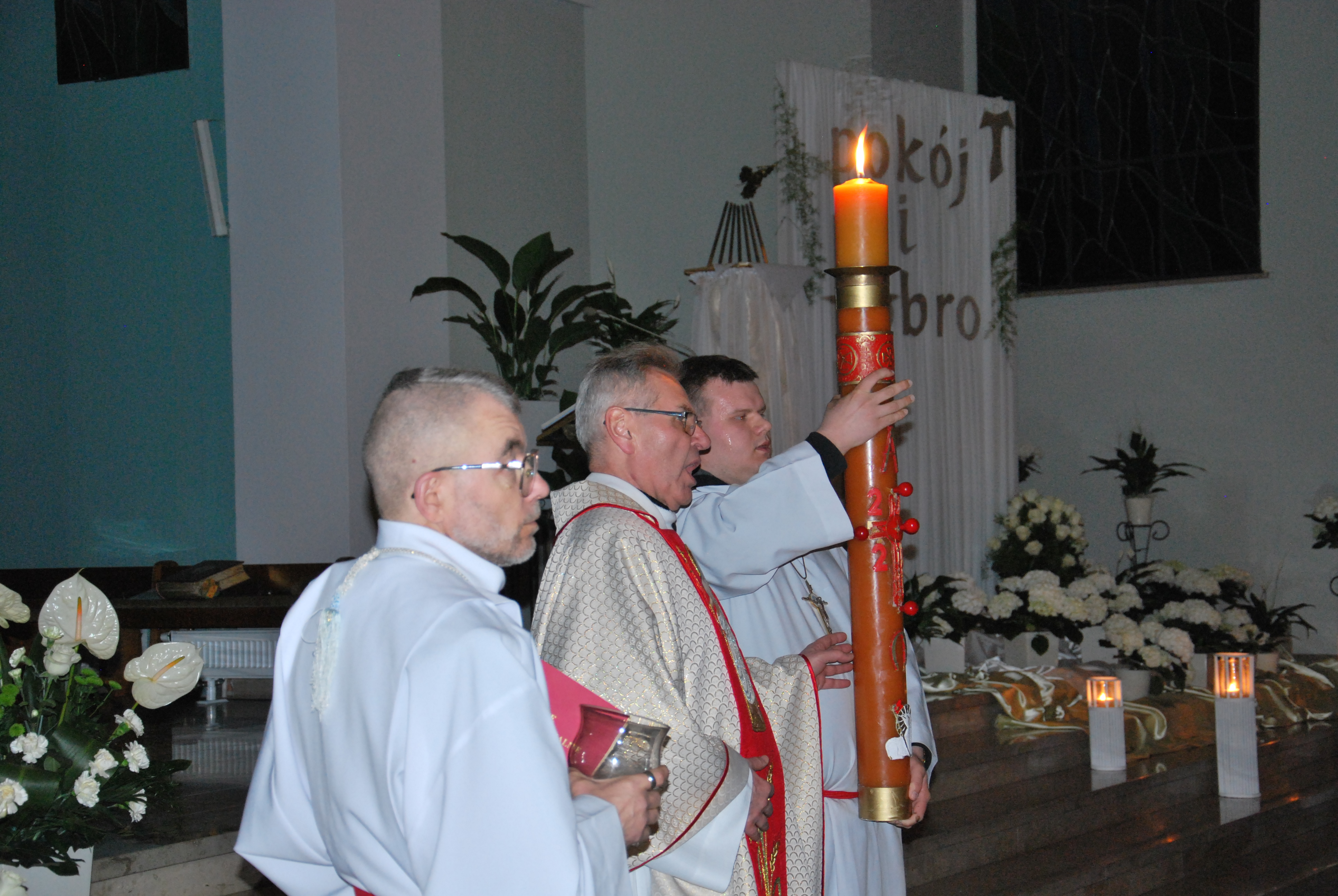 Następnie wysłuchaliśmy rozbudowanej liturgii słowa, obejmującej najważniejsze wydarzenia historii zbawienia – od stworzenia świata, przez wyjście Izraelitów z niewoli egipskiej, aż po zapowiedzi odkupienia. Kulminacyjnym momentem było odczytanie Ewangelii o Zmartwychwstaniu Pańskim oraz radosny śpiew „Alleluja”, który po raz pierwszy od Wielkiego Postu rozbrzmiał w kościele.