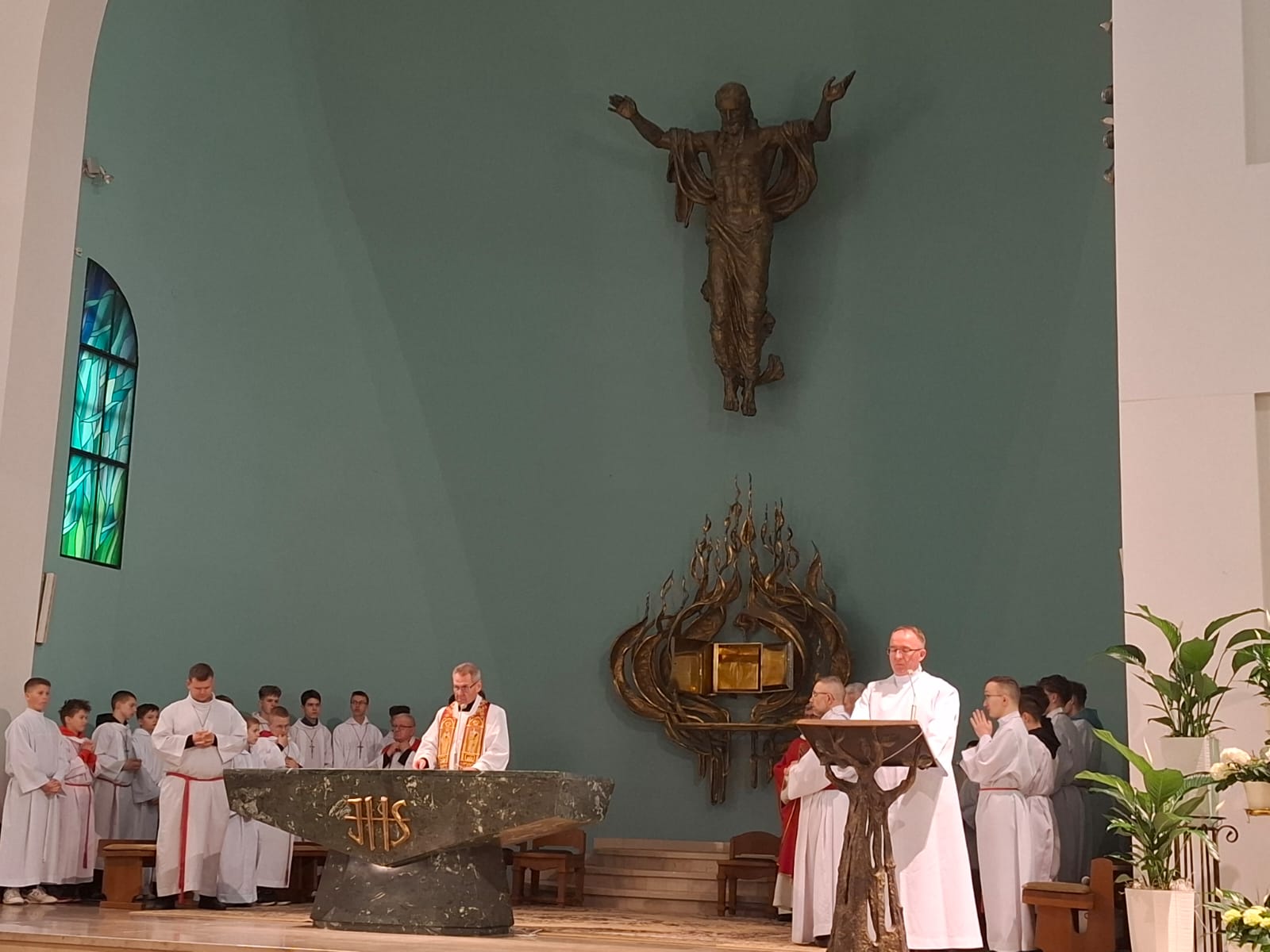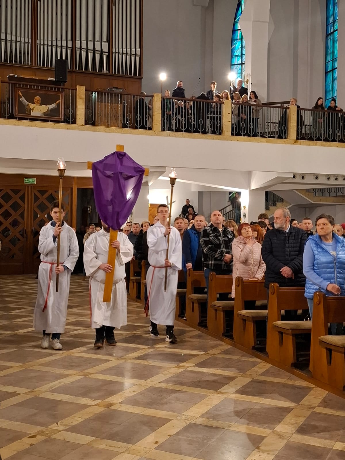 Homilię wygłosił ks. Piotr Białek, który ukazał sens krzyża Chrystusa jako znaku miłości i zbawienia. Zwrócił uwagę, że męka Jezusa nie jest jedynie wydarzeniem historycznym, ale rzeczywistością, która dotyka życia każdego człowieka i otwiera drogę do nowego życia. Podkreślił, że krzyż – choć po ludzku jest znakiem cierpienia – w świetle wiary staje się miejscem zwycięstwa miłości Boga nad grzechem i śmiercią.