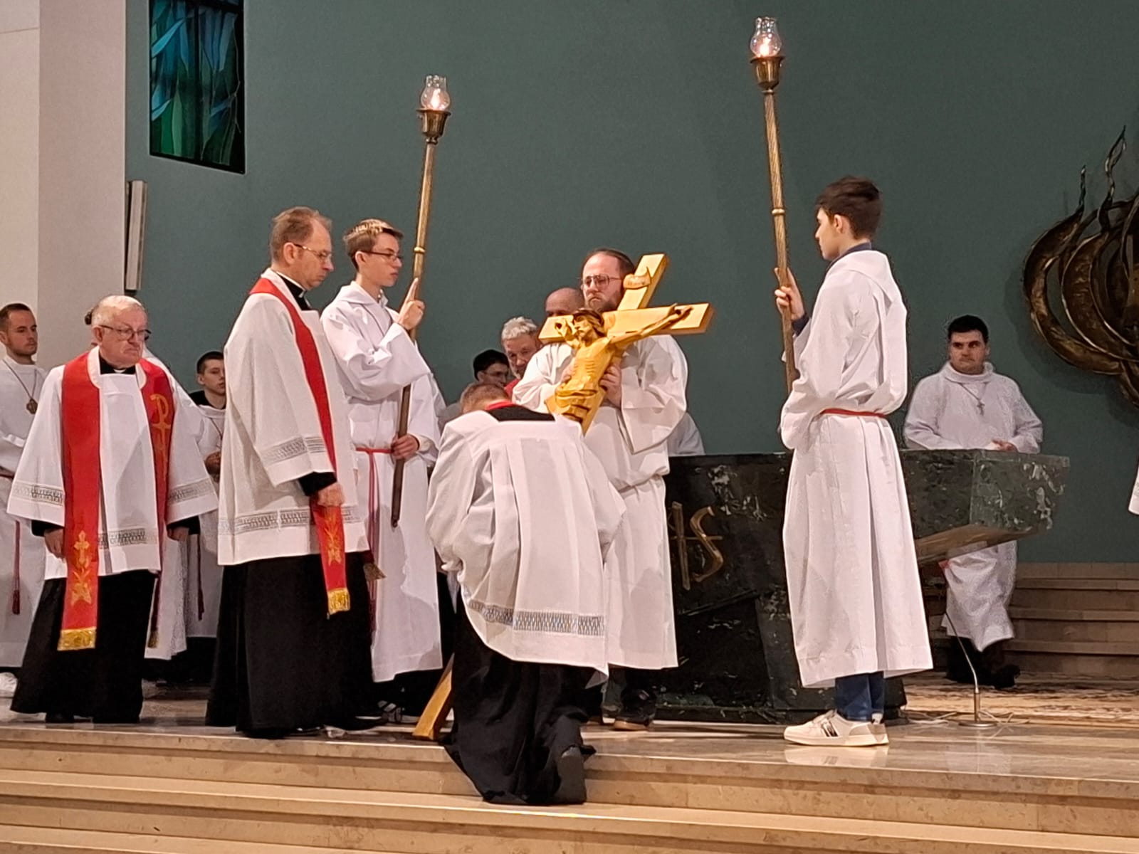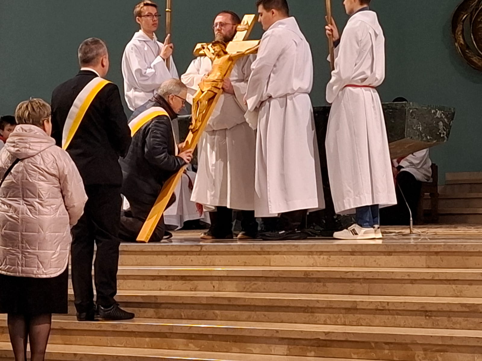 Kolejnym ważnym momentem była adoracja krzyża. W procesji wniesiono krzyż, który stopniowo odsłaniano, ukazując wiernym znak zbawienia. Następnie uczestnicy liturgii podchodzili, aby oddać mu cześć poprzez uklęknięcie lub ucałowanie.